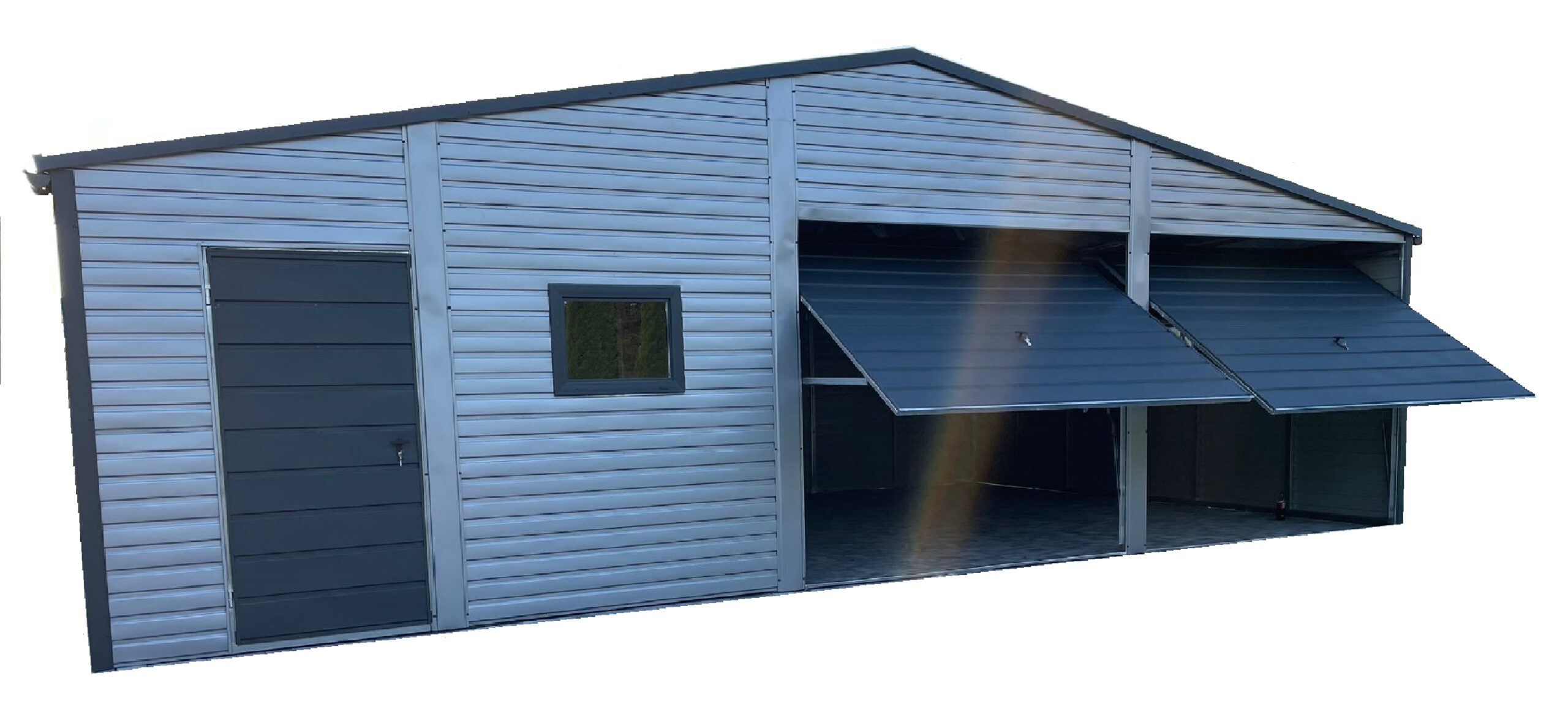 Szukasz stylowego i funkcjonalnego garażu blaszanego z dwoma bramami uchylnymi?